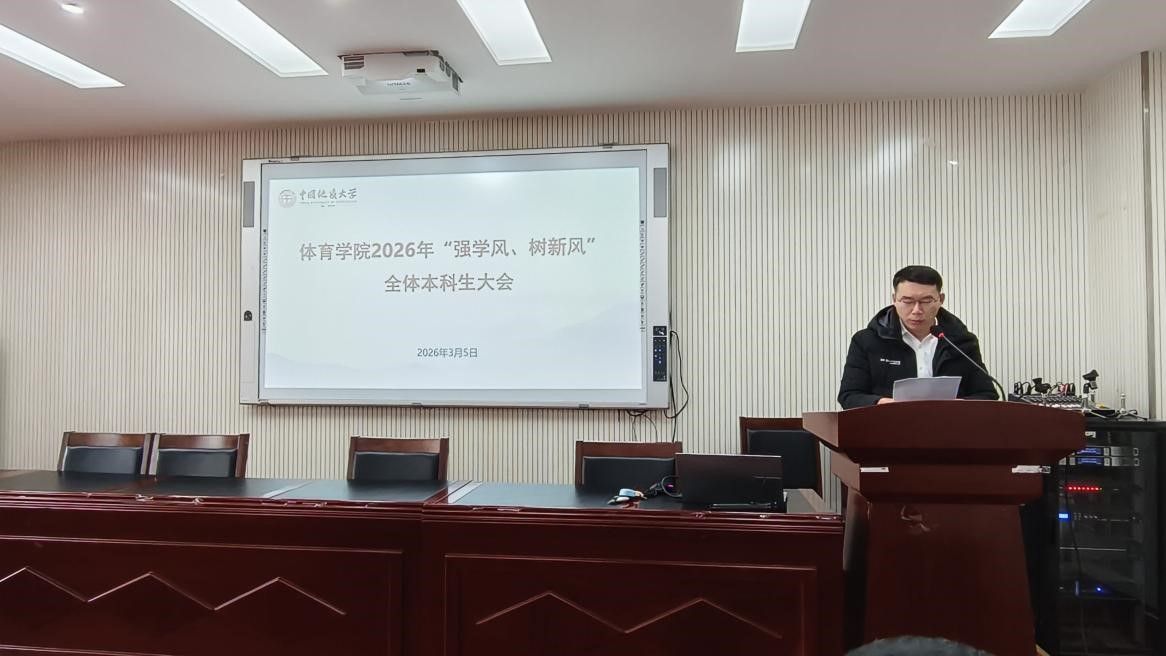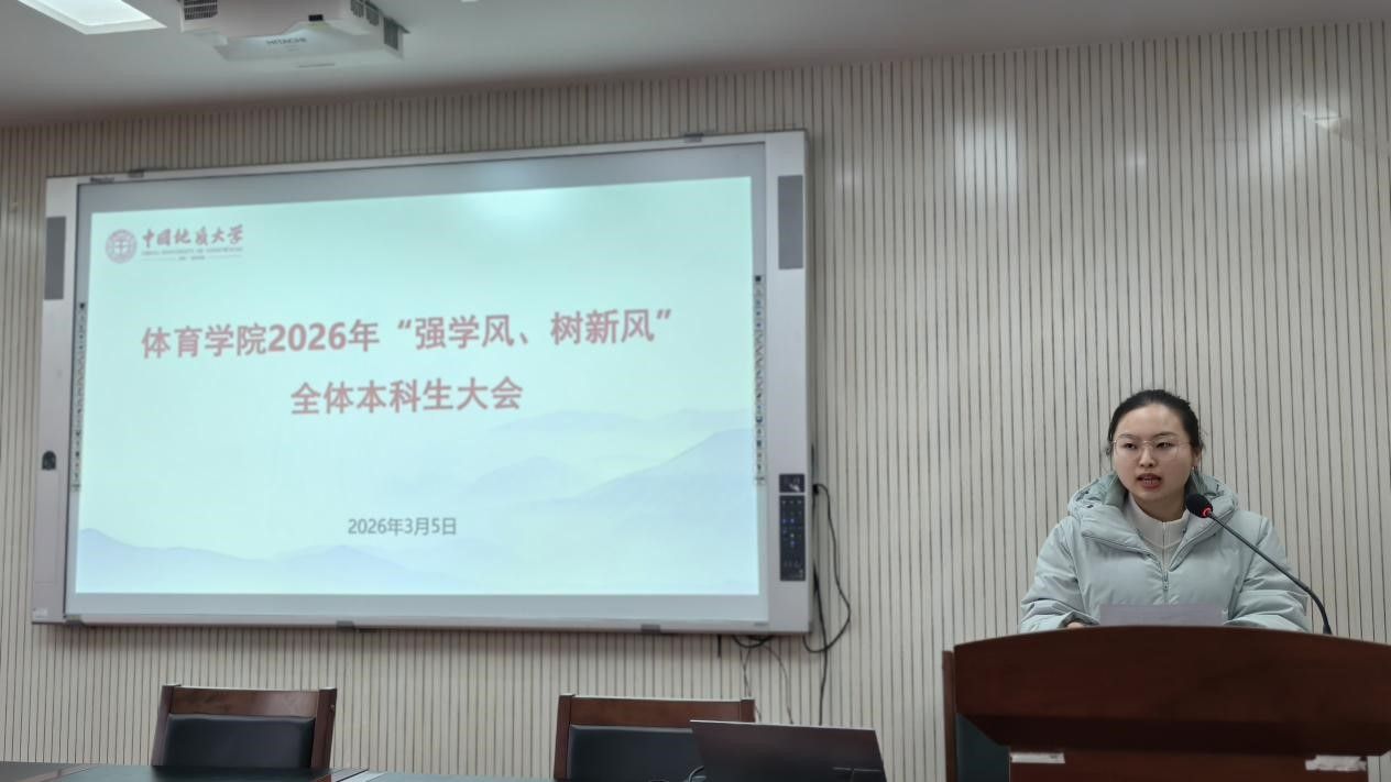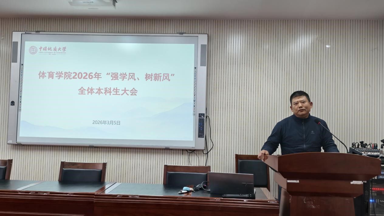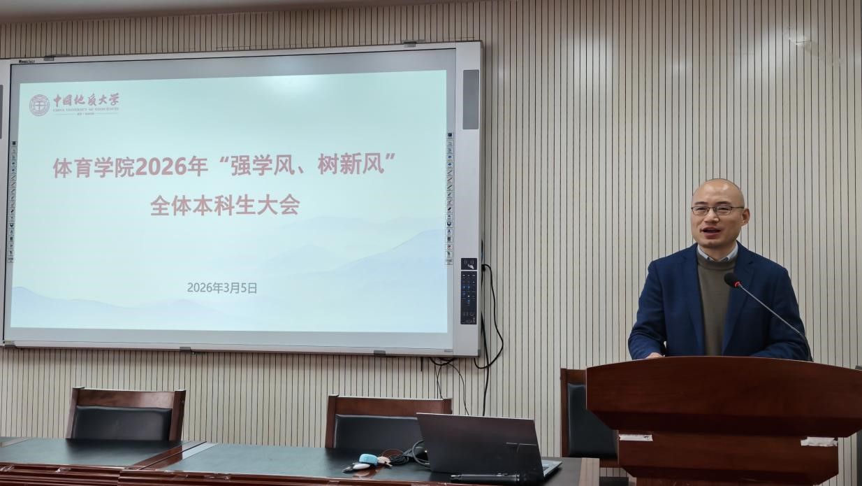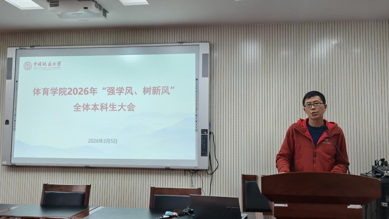 (通讯员 夏奕 杨麦琪 陈爽)为进一步加强学院学风建设,营造“严在地大”的优良育人氛围,引导全体本科生树立优良学习风气,swagporn 于2026年3月5日下午在体育馆三楼科报厅召开“强学风,树新风”全体本科生大会,学院全体领导班子、体育系主任、专业课教师、辅导员、班主任、教学秘书及全体本科生参加会议,会议由学院党委副书记朱军主持。