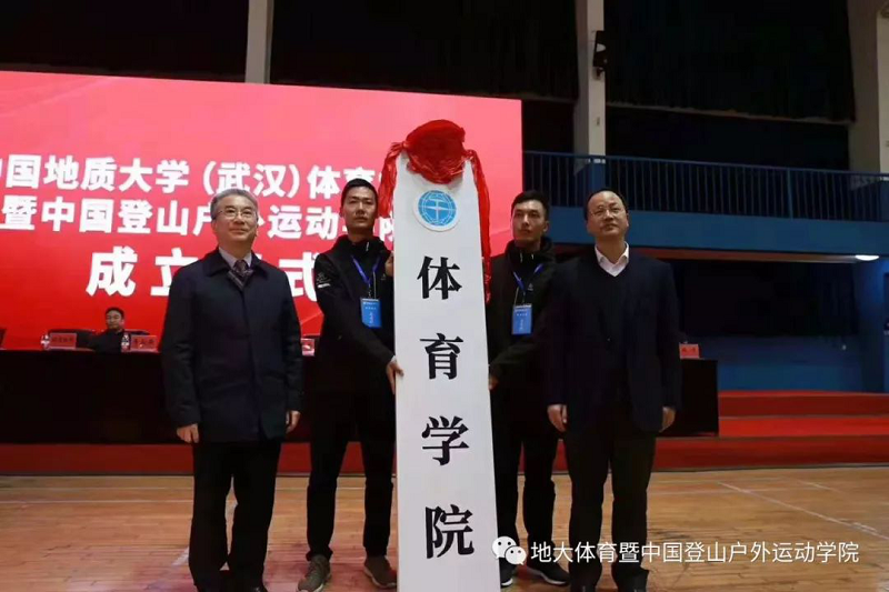 2018年11月16日下午16点30分,中国地质大学(武汉)体育学院暨中国登山户外运动学院成立挂牌仪式于中国地质大学(武汉)体育馆内隆重举行。出席本次仪式的有中国登山协会、中国地质大学大学(武汉)、相关政府机构、各高校户外机构、俱乐部、媒体等相关领导和嘉宾。