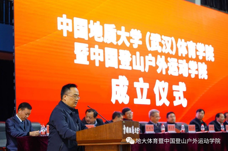 湖北省体育局局长胡功民同志在致辞中表达了对中国地质大学(武汉)成立体育学院和中国登山户外运动学院的祝贺,表示学院的成立对湖北省户外运动有着时代性的意义。