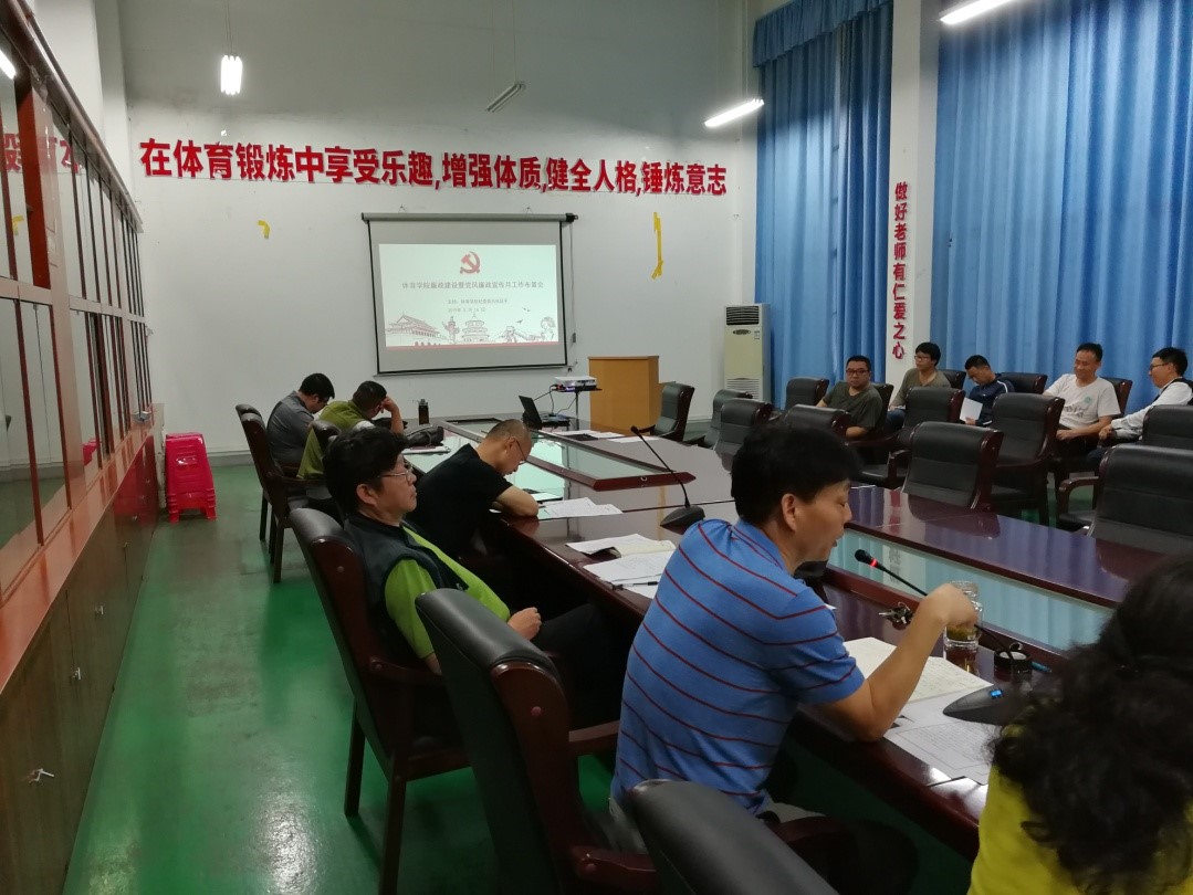 根据《中共湖北省委办公厅关于印发<全省第十八个党风廉政建设宣传教育月活动方案>的通知》(鄂办发电(2019)18号)和《省委教育工委关于转发全省第二十个党风廉政建设宣传教育月活动方案的通知》精神,5月17日下午,体育学院在体育馆二楼会议室召开廉政建设暨党风廉政宣传月工作布置会,体育学院全体教职工参加,体育学院纪委委员张延平主持会议。