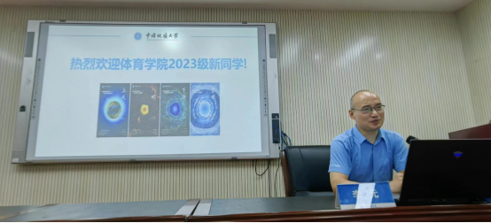 最后,院长李元教授讲授开学第一课。李院长热烈欢迎2023级新同学的到来,为同学们系统介绍了体育学院的发展历程,从历史沿革、师资队伍、学科专业、科学研究、竞技体育、群众体育、特色体育、对外交流等多个方面为新生介绍了学院发展情况,勉励大家要坚定理想信念、锤炼品德修为、练就过硬本领。