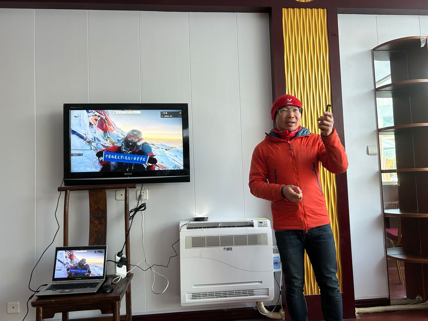 实习尾声,还邀请到了中国登山高级人才(CMDI)、高山向导李永生为实习师生开展了一场高海拔登山讲座。他结合攀登经历,讲述了从一名登山运动爱好者,到登上世界之巅的成长过程。他鼓励同学们以兴趣为起点,以热爱为动力,以自律为基点,终能实现梦想。讲座得到了同学们的热烈欢迎,激励了同学们勇于攀登高海拔雪山的斗志,也为体育学院2023年度教学实习工作画上了圆满的句号。