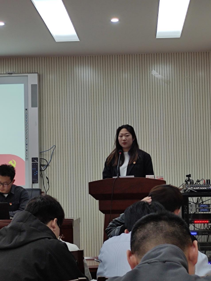 学生联合党支部书记綦霄同志代表本届支委向支部大会做述职报告,围绕“七个有力”从支部建设、发展党员、活动开展等方面汇报支部工作和党建成果。