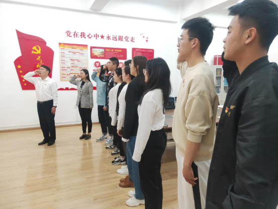 新一届支部委员会重温入党誓词。宣誓仪式由学院党委副书记朱军担任领誓人,全体党员面对党旗郑重宣誓。