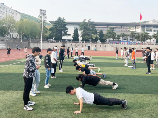 2022年5月11日下午,第二次大学生长江源科考50名队员在西区操场进行第一次日常训练。