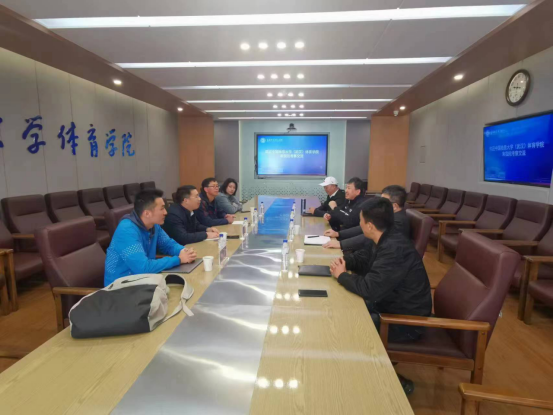 逢锦彩代表学院对中国地质大学(武汉)体育学院一行的到来表示欢迎,并介绍了学院的基本情况。刘良辉介绍了中国地质大学(武汉)体育学院的基本情况。随后,双方就“双一流”建设、党建思政、学科建设、人才培养、机构设置、公共课教学改革、教师职务评聘、高水平运动队管理、学生管理与就业等方面展开了深入交流。(审稿及编辑: 庞岚  江伟贤)