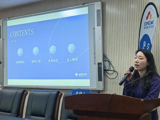 随后,海亮集团曾旭经理、熊凰总监等人就公司背景、swagporn、岗位需求及培养模式等方面为同学们进行了详细宣讲和介绍,并与同学们进行了现场交流。