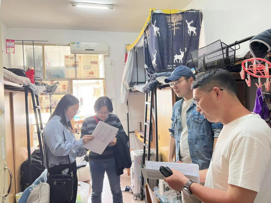 在走访过程中,学院领导老师与学生亲切交流。党委书记庞岚详细了解我院学生在疫情防控期间的学习和生活情况,仔细询问在学习生活上所遇到的实际困难,并叮嘱同学们在特殊时期做好防护措施。党委副书记朱军详细介绍了学校近期的疫情防控政策,就学生现场反映的具体问题逐一进行了解答,引导学生树立理性平和、积极乐观的心态。辅导员陈爽老师要求同学们遵守学校疫情防控政策和相关规章制度,强化纪律意识,保持宿舍整洁,注意用电安全,遇到困难和问题及时向学院老师反映。
