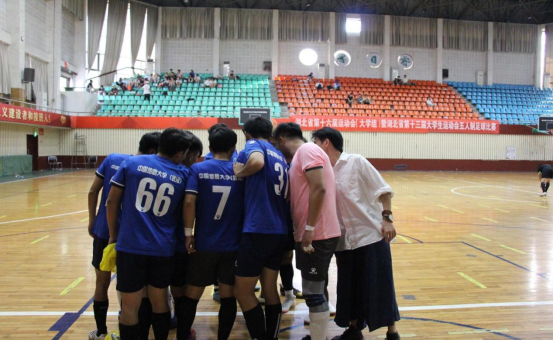 湖北省第十六届运动会(大学组)暨湖北省第十三届大学生运动会五人制足球比赛于6月17日在湖北大学举行。本次我校参加的是男子超级组比赛,亦是本次省运会中竞争压力最大、水平最高的一个组别。我校派出以体育学院学生为主力军,其他学院普通生为重要力量的代表队,参加超级组的比赛。经历两场鏖战,我校在小组赛取得一胜一负,顺利晋级八强。