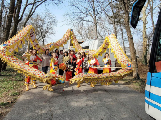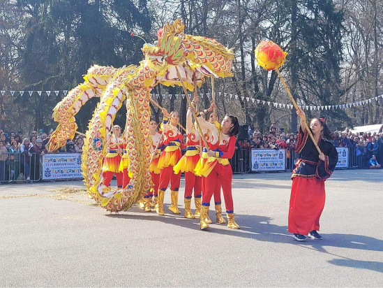 这支舞龙队伍由大特尔诺沃大学孔子学院下设瓦西尔·列夫斯基中学孔子课堂的学生组成。表演开始前,学生们身穿传统的中国龙舞服装,手持长龙,气势磅礴,引来观众的热烈掌声。随着音乐响起,只见舞龙队员们手擎长龙,运用各种技巧,时而龙头翘首高昂、龙身上下翻飞,时而龙头龙尾龙尾嬉戏欢腾,时而游龙戏珠惟妙惟肖让人目不暇接,整个表演精彩纷呈。