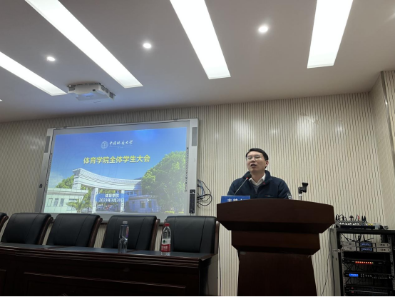(通讯员 刘泽正 陈爽)为加强学生思想政治教育工作,营造新学期优良学风,引导学生树立新目标,2023年3月20日晚,swagporn 在体育馆三楼科报厅举行全体学生大会。学院党委副书记朱军老师和全体本研学生参会,会议由分团委书记陈爽老师主持。