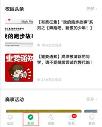 二、打开步道乐跑手机APP,点击左下角“发现”