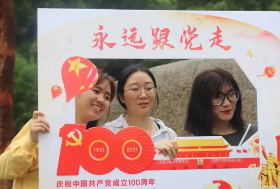 来自经管学院的参赛队伍晨旭队感悟到:“百年征程波澜壮阔,百年初心历久弥坚。今天我们地大学子在雨中重温光荣岁月,探寻百年历程,百年党旗红,笑唱南湖风。大雨挡不住青年的朝气与激情,我们晨旭队徜徉于党史知识的海洋,共唱红色歌曲表达对党的拥护和热爱;旗手前引路,亿众续长征。我们将继承革命先辈精神,为实现中华民族伟大复兴的中国梦不懈奋斗。吾党百年,青春焕发!”